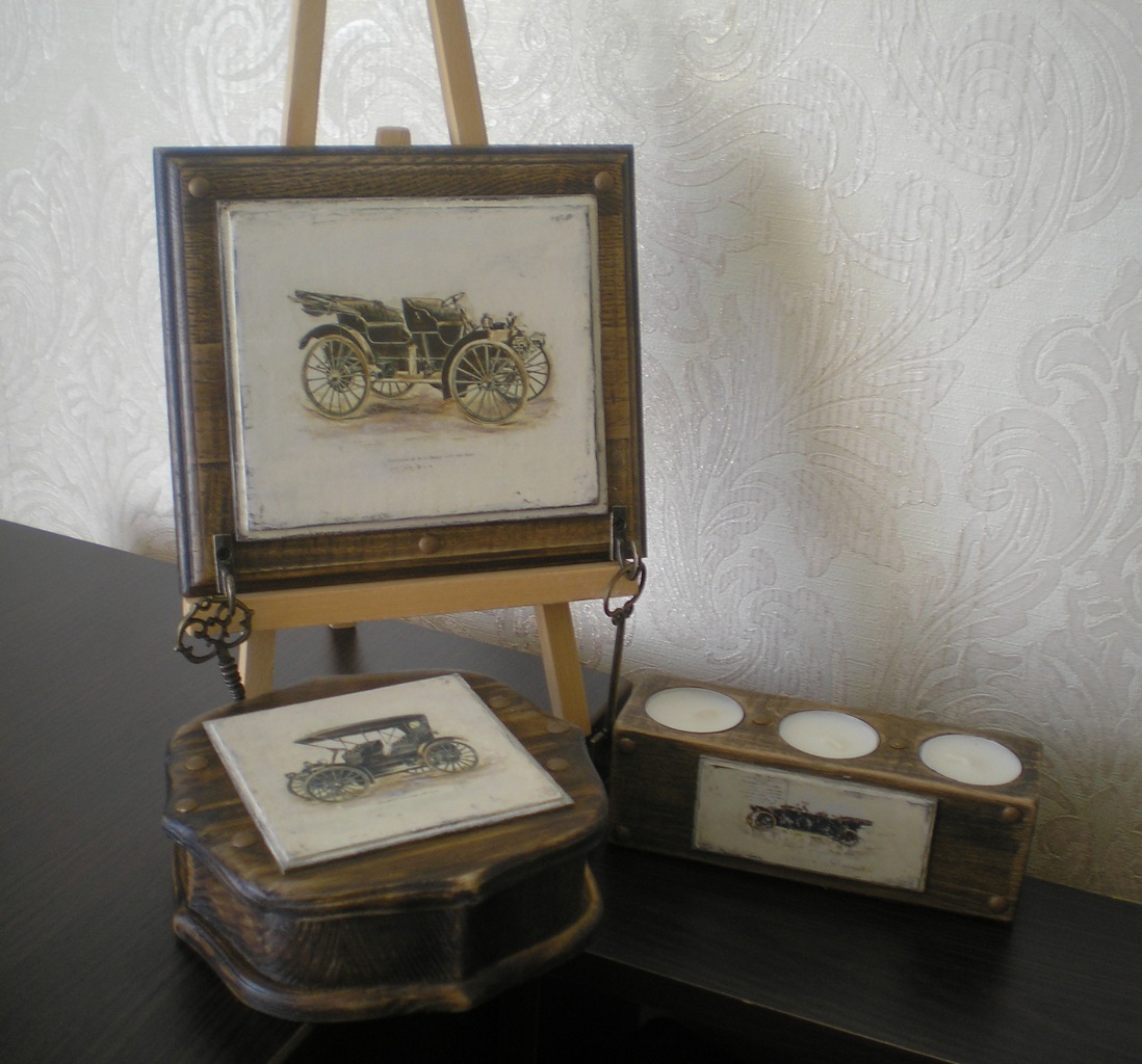 Комплект для прихожей или кабинета. Ключница, шкатулка для мелочей, подсвечник. Все из разных пород дерева.
